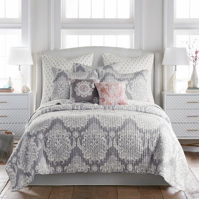 - COORDINATE YOUR HOME: Create a wonderful space with our coordinated Belhaven Collection. The blush, grey and white design brings damask medallion accents into your home and will match a variety of different looks. You can also freshen your room with complementary quilts sets, euro shams and throws from the Levtex Home collection.