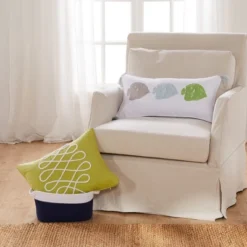 The Embroidered Fish decorative pillow matches perfectly with the Levtex Home Deva Beach bedding collection. This pillow is sized at 12x24in. and features three intricately embroidered fish in grey, pale blue and green on white canvas. The pillow is beautifully finished with grey tassels in each of its four corners. The lime and white color palette makes this a versatile accessory for your bed, couch or favorite chair. The pilow comes pre-filled with a soft luxurious feather inner.