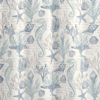 - THE GALAPAGOS DESIGN: One of our most popular collections, Galapagos is inspired by a snorkeling adventure on a beautiful coral reef. This subtle and soothing coastal print shower curtain will immediately transform the look of any bathroom.